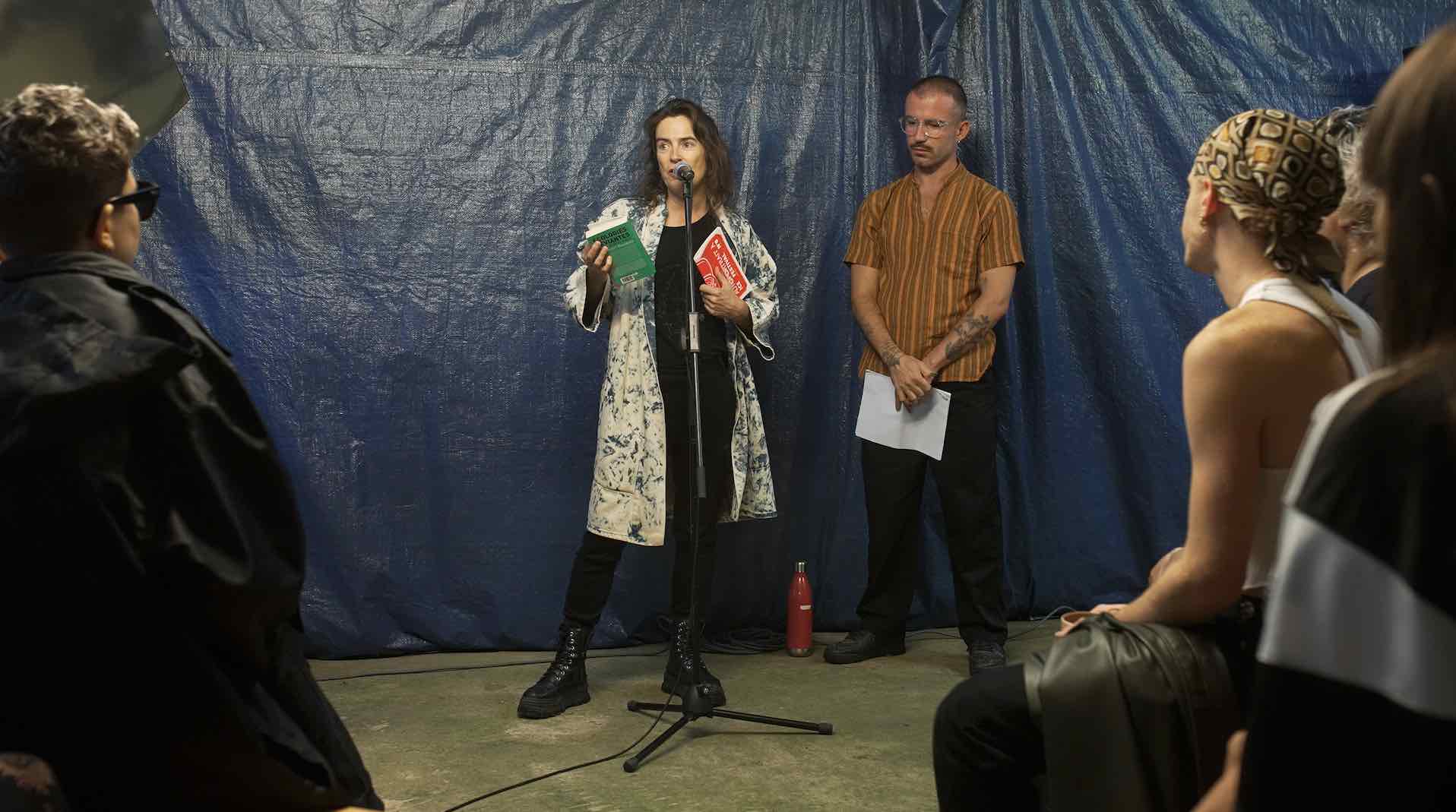 propre à son milieu d'origine : pudique, parcimonieuse, tout en étant chargée de références et de double-sens. La lecture de poèmes narratifs est accompagnée d’une projection composée avec la graphiste Anne-Lise Bachelier.